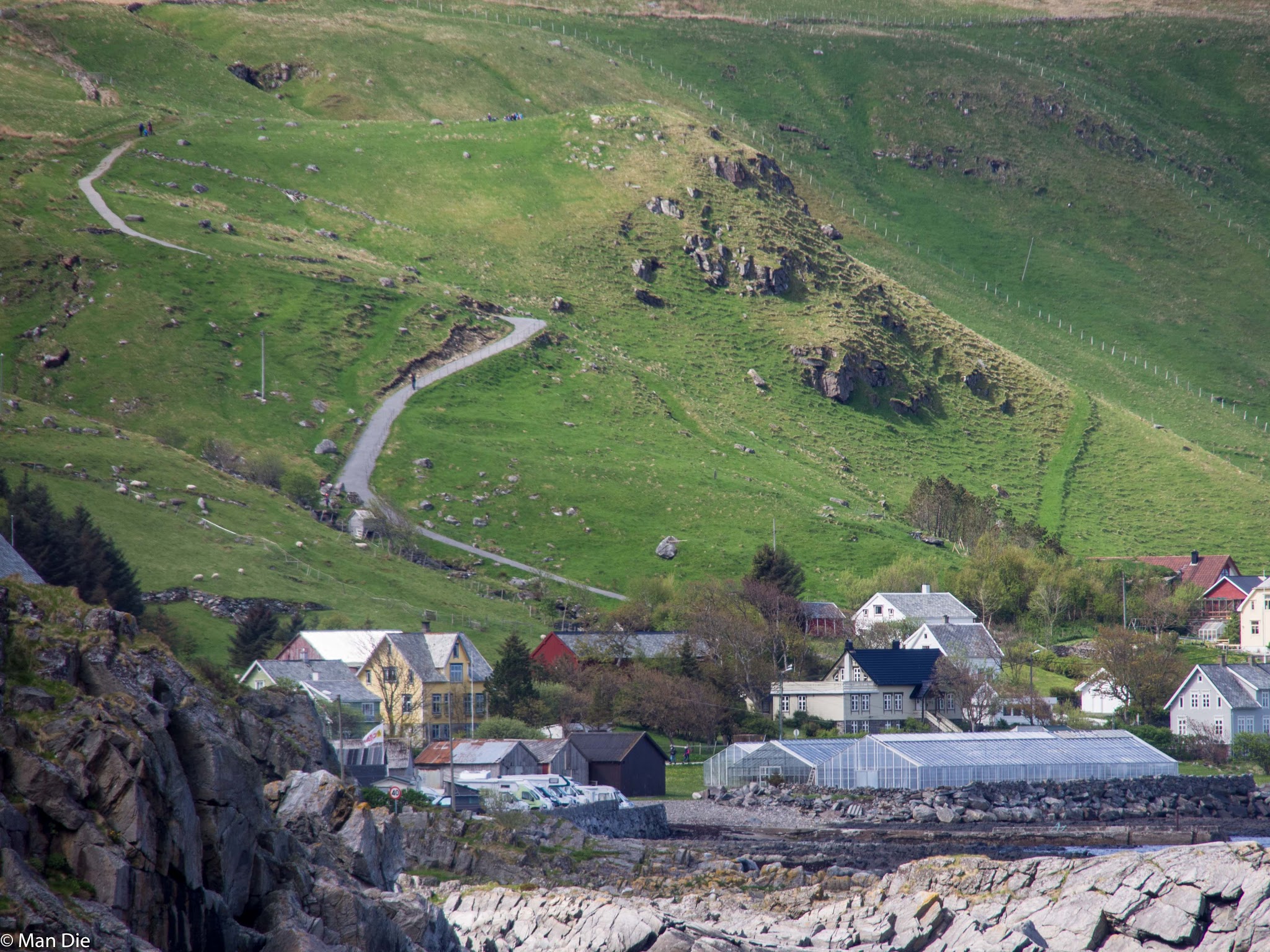 Leider waren wir beim Aufstieg zu langsam, um das  das Fjordmuseum am Ende des Weges noch zu besuchen, da es in der Nebensaison nur bis 15:00Uhr geöffnete hatte. So machten wir uns wieder auf den Rückweg, diesmal folgten wir der Straße hinab zum Fjordufer.