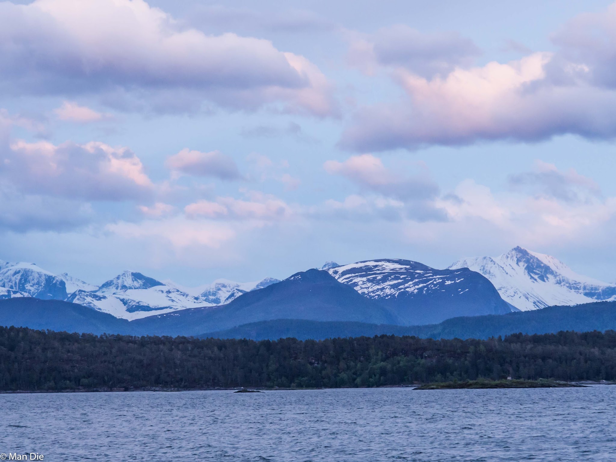 Im Regen und vom starken Wind durchgeschüttelt fuhren wir noch bis Molde. Auf dem dortigen Campingplatz machten wir es uns gemütlich und verbrachten den Rest des Tages faul im Mobil.Beinahe wäre es der erste Urlaubstag seit langer Zeit geworden, an dem kein Foto entstand. Aber am späten Abend besserte sich das Wetter und wir konnten einen Blick auf die 81 Berge um Molde herum werfen.