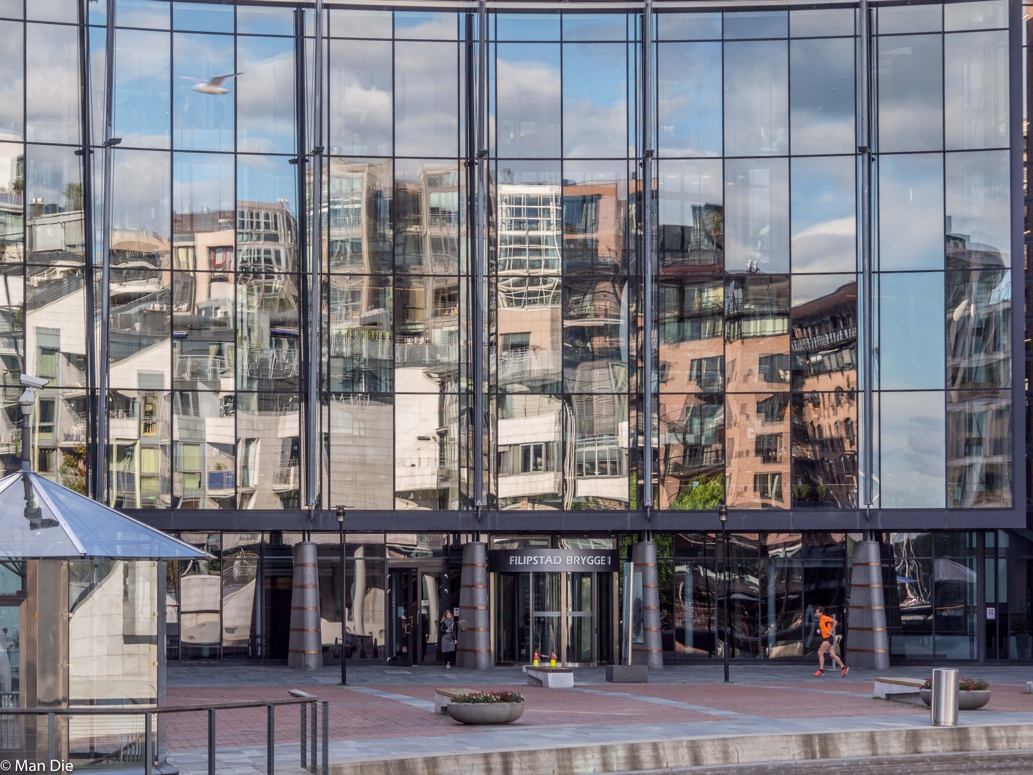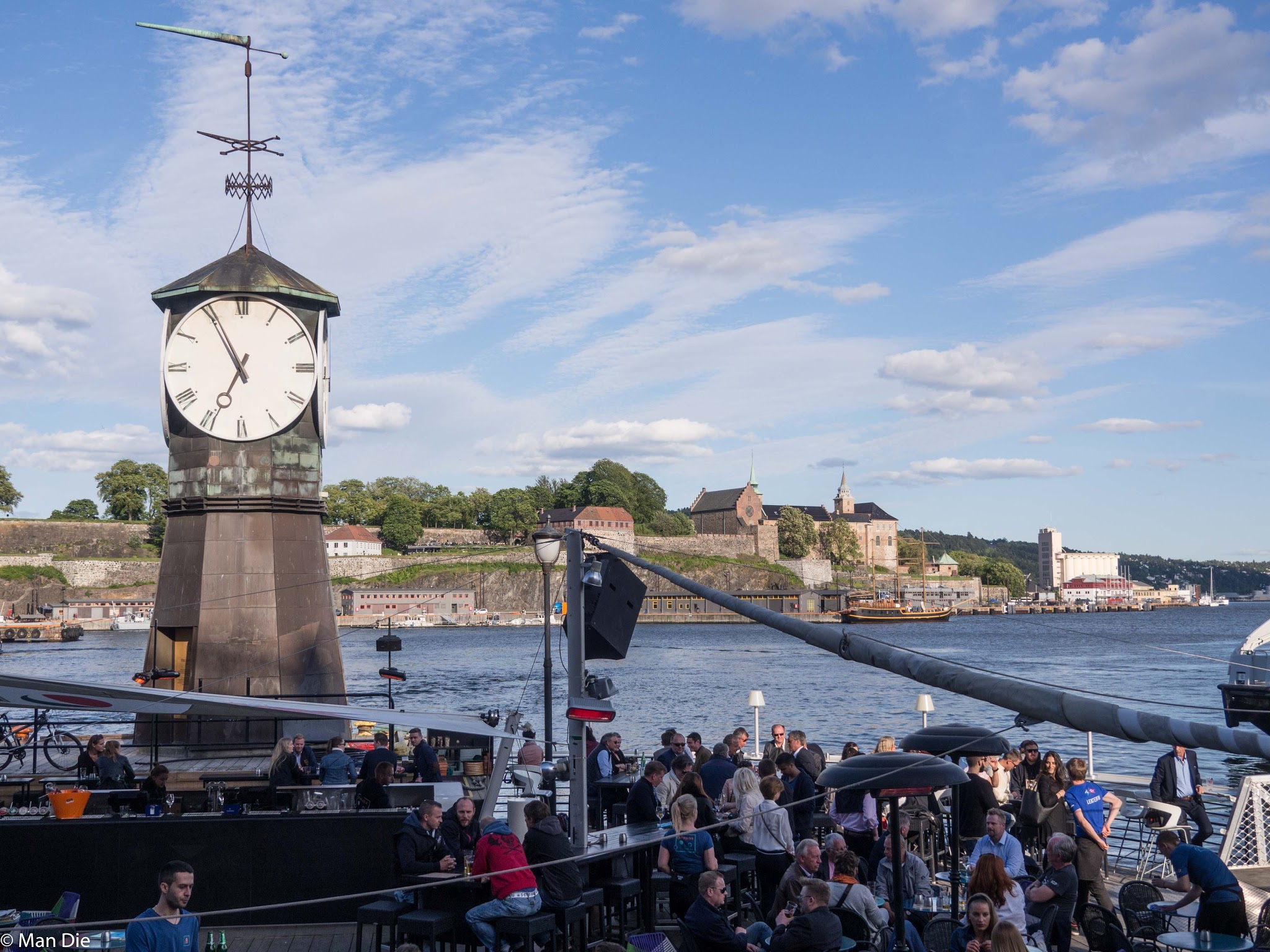 Durch Glück erhaschten wir noch einen Stellplatz in der ersten Reihe mit Blick auf den riesigen Sportboothafen. Nachdem wir es geschafft hatten, die Gebühr zu entrichten, folgte die obligatorrische Kaffeepause, bevor wir uns mit den Rädern Richtung Aker Brygge auf den Weg machten. Wir bummelten durch das Neubauviertel und bewunderten die Ideen der Architekten. Das ganze Gebiet ist eine norwegische Ausführung der  Hafen City, allerdings bereits fertiggestellt.